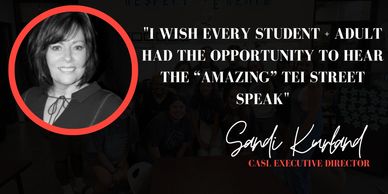 I wish every student + adult had the opportunity to hear The “Amazing” Tei Street speak, because they would leave her space a changed person. It’s impossible not to. We chose her as our speaker for our State Conference because we knew she would also invest time in crafting a presentation that would deliver our message, and meet our needs, specifically for our audience. That is who Tei is; a speaker who cares about your school/organization, can command an audience and deliver your message in a way everyone wants to listen, and a human who cares deeply about making sure that message is more than just a moment. Her purpose is to change the narrative, create a lasting impact, and build a community that continues to transform all of us for the better.